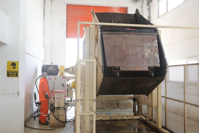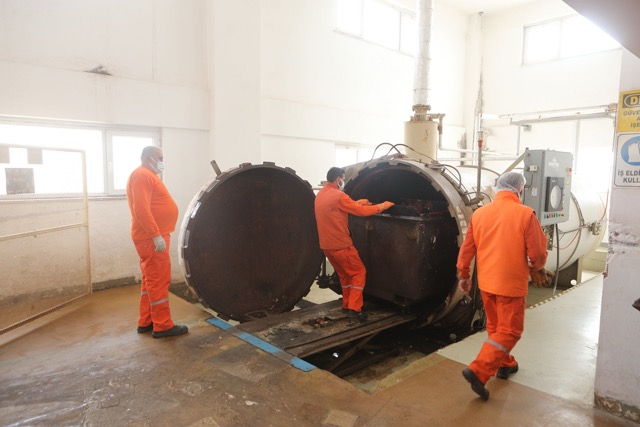 Tıbbi atık yönetim planına uygun şekilde kaynağında ayrıştırılan atıklar, sterilizasyon tesisinde basınçlı buhara maruz bırakılarak steril hale dönüşüyor.