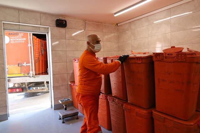 SAKARYA- Sakarya Büyükşehir Belediyesi, örnek çevre politikası kapsamında sürdürdüğü atık toplama çalışmalarını hızla sürdürüyor. 16 ilçedeki sağlık kuruluşlarından uygun koşullarda toplanan aylık 130 ton tıbbi atık, lisanslı araçlarla Tıbbi Atık Sterilizasyon tesisine getirilerek güvenli bir şekilde bertaraf ediyor. 16 ilçedeki sağlık kuruluşlarından günlük olarak toplanan atıklar basınçlı buhar, parçalama ve kimyasal-biyolojik indikasyon eşliğinde bertaraf ediliyor.