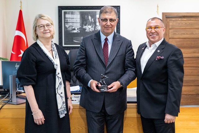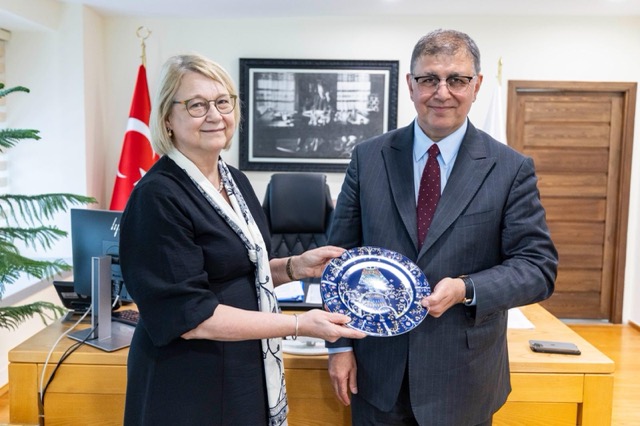 Başkan Dr. Cemil Tugay, daha sonra İzmir Büyükşehir Belediyesi’ne ilk resmi ziyaretini gerçekleştiren Finlandiya Büyükelçisi Pirkko Hämäläinen ve beraberindeki heyetle bir araya geldi. Sıcak ve samimi bir ortamda gerçekleşen ziyarette, kentlerin çağın gereklerine uygun olarak gelişmesinin önemine dikkat çekildi. Başkan Tugay, konuklarına altyapı, Körfez, ulaşım, kentsel dönüşüm alanındaki çalışmalarını anlattı. Atık yönetimini çok önemsediklerini ifade eden Tugay, “Evlerde çöpleri ayrıştırarak toplama çalışmasını başlattık. Bu çalışmayı tüm kente yayarak, atık yönetimini daha da iyileştirmeyi planlıyoruz. 2030 yılına kadar karbon nötr olma hedefimiz de var. Bunu da enerji verimliliğine odaklanarak, karbon salımını azaltarak yapmayı istiyoruz. Enerji verimliliği çok önemli. Temiz enerji kaynaklarından güneş, rüzgar ve jeotermal enerji potansiyelimiz bulunuyor. Bunlara odaklanabiliriz” dedi.