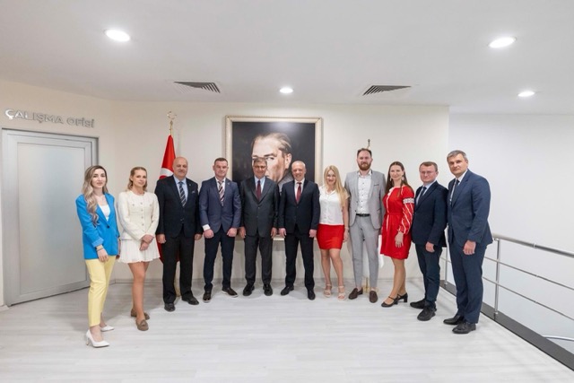 Ukrayna’dan gelen Çernivtsi Belediye Başkanı Roman Klichuk ve beraberindeki heyet de İzmir Büyükşehir Belediyesi’ne ilk resmi ziyaretini gerçekleştirdi. Ziyaretten duyduğu memnuniyeti ifade eden Başkan Dr. Cemil Tugay, İzmir’de çok sayıda Ukrayna vatandaşının yaşadığını anımsattı. Ziyarette iklim krizi, çevre, gıda, enerji gibi geleceğin krizlerine değinen ve bu başlıkların artık bütün ülkelerin sorunu olduğunu dile getiren Tugay, “Bu sorunların çözümleri için yapabileceğimiz iş birliği bizi memnun eder. Ulaşım, çevre, yeşil alanlar, atık yönetimi konusunda yoğun şekilde çalışıyoruz. En önemli konu enerji. Hem enerjiyi verimli kullanmak hem de temiz enerji üretimi ile ilgili çalışıyoruz. Bütün bilgi ve deneyimimizi paylaşmaya hazırız. Yine aynı şekilde sizden de çok şey öğreneceğinize inanıyorum. İzmir’in turizm potansiyeli çok yüksek. İzmir’de gezilecek, görülecek çok yer var. 7 antik kente ev sahipliği yapıyor” dedi.