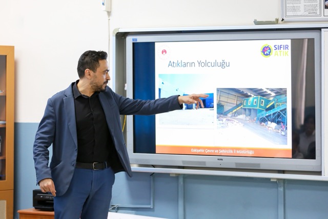 İZMİR- Narlıdere Belediyesi İklim Değişikliği ve Sıfır Atık Müdürlüğü çalışanları, 5 Haziran Dünya Çevre Günü kapsamında ilçedeki öğrencilere yönelik çevre ve sıfır atık konularında eğitim verdi