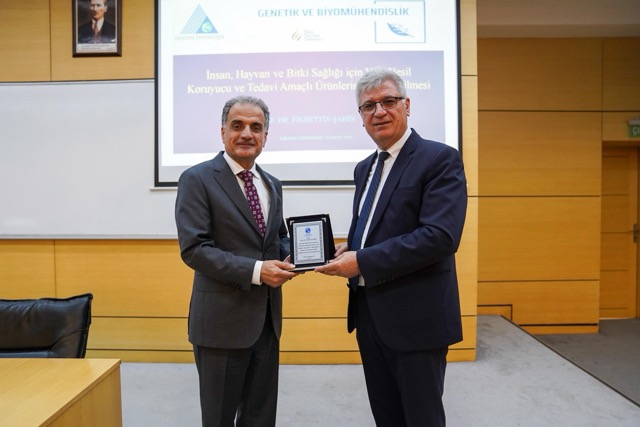 Prof. Dr. Fikrettin Şahin, “İnsan, Hayvan ve Bitki Sağlığı İçin Koruyucu ve Tedavi Amaçlı Ürünlerin Geliştirilmesi” başlıklı sunumunda mikroorganizmaların insan sağlığındaki yeri, virüslerin bulaş mekanizmaları, hijyenin önemi ve sağlık alanında yürütülen bilimsel çalışmalar hakkında kapsamlı bilgiler verdi.