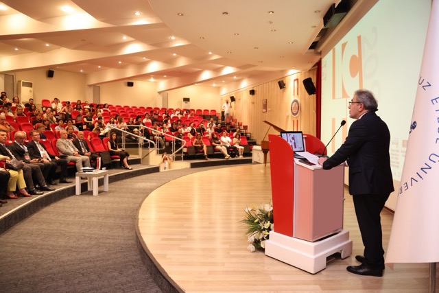 DEÜ Rektörü Prof. Dr. Bayram Yılmaz ise sosyal bilimlerin üniversite için çok önemli bir alan olduğuna değinerek; “Cumhuriyetimize ve milletimize hizmet eden Üniversitemizde böylesine seçkin bir kurultaya ev sahipliği yapmaktan onur duyuyoruz. Biz size bu kültürü, tam da adı ile özdeşleşen Dokuz Eylül Üniversitesine varlığı Türkiye Cumhuriyeti’ne, Türk milletine, Türk kültürüne hizmet etmek üzere kurulan bu kuruma getirdiğiniz için biz sizlere teşekkür ederiz. Dokuz Eylül Üniversitesi olarak biz tam akredite bir üniversiteyiz, bir araştırma üniversitesiyiz. 60 binden fazla öğrencimiz var. 5 binden fazla uluslararası öğrencimiz var. Dokuz Eylül Üniversitesi 18 fakültesi, 7 meslek yüksekokulu, 1 yüksekokul, 10 enstitüsü ile sadece bir sağlık bilimleri üniversitesi değil, sadece bir mühendislik üniversitesi değil çok güçlü bir şekilde bir sosyal bilimler üniversitesi. Biz, komple bir üniversiteyiz. Üniversitemizi Selçuklu kartalı olarak görecek olursak; bir kanadımız sağlık bilimleri, bir kanadımız mühendislik bilimleri; sosyal bilimler ise bizim istikametimizi belirleyen alan diyoruz,” dedi.